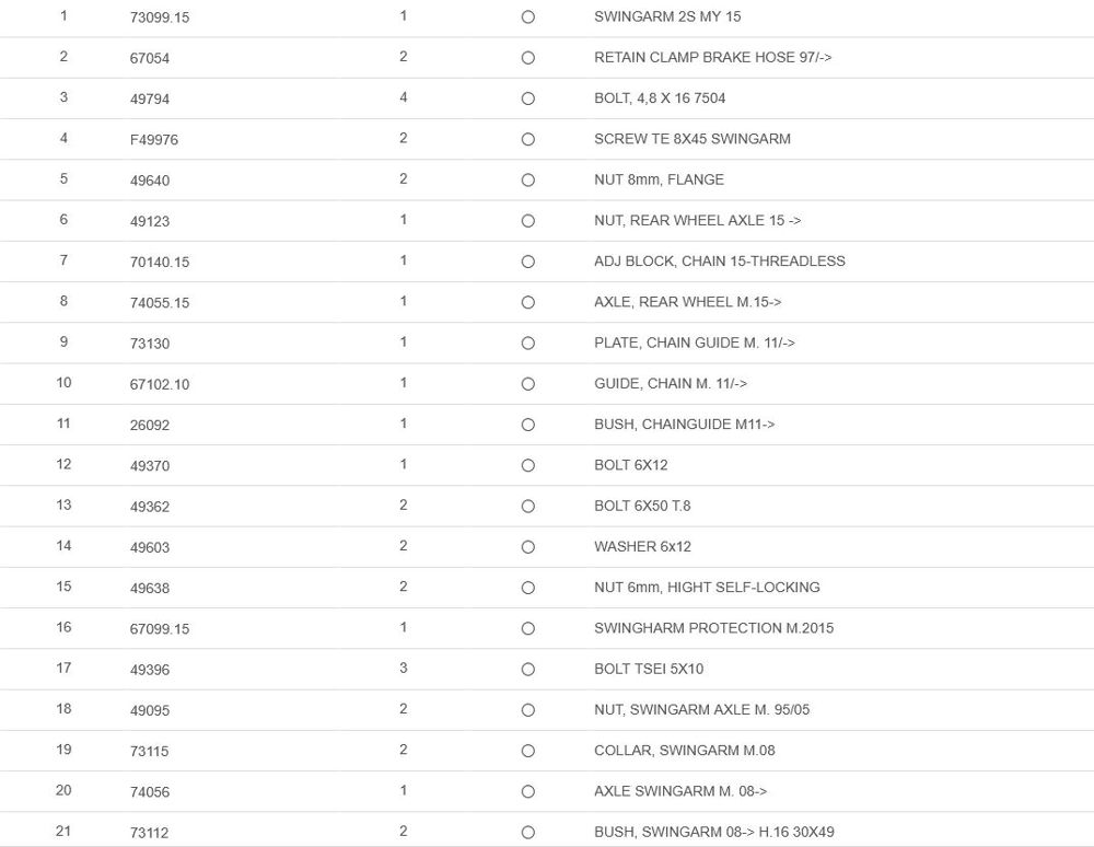 Fichas Técnicas TM RACING