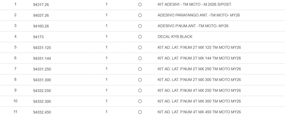 Fichas Técnicas TM RACING
